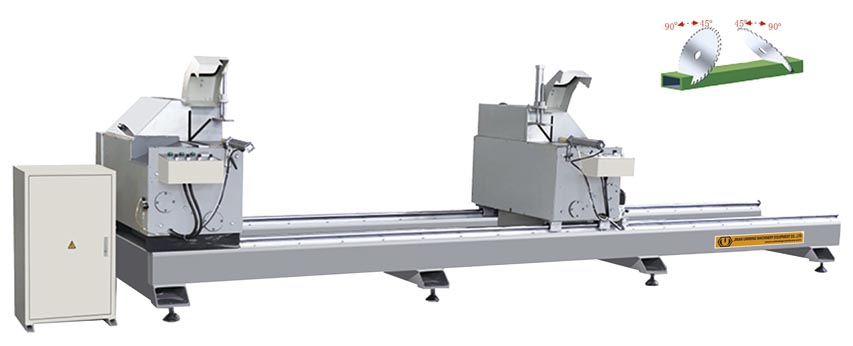 這些設(shè)備的用途分別是:雙角鋸用于PVC型材的定尺、定角度鋸切下料;V型鋸用于框挺的V型口鋸切;中梃鋸用于中梃料90端面定尺切割、玻璃壓條鋸用于各種玻璃壓條型材的定尺、定角度鋸切下料;無齒鋸用于增強型鋼的定尺下料。