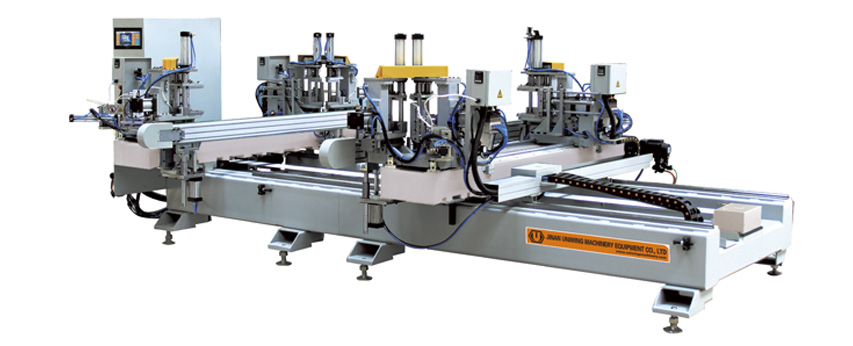 焊接設(shè)備有單點焊機、四角焊機、多頭焊機、多層焊機、共擠焊機、無縫焊機、Y型焊機等。單點焊機可進行0°~180°角的焊接;四角焊機主要用于矩形框、扇的焊接;多頭焊機還可用于中梃和橫梁的焊接;共擠焊機實現(xiàn)兩個機頭的兩個壓鉗共同運動,可以提高焊角強度;無縫焊機可用于共擠型材的焊接;Y型焊機可以實現(xiàn)三種不同斷面的型材同時焊接。