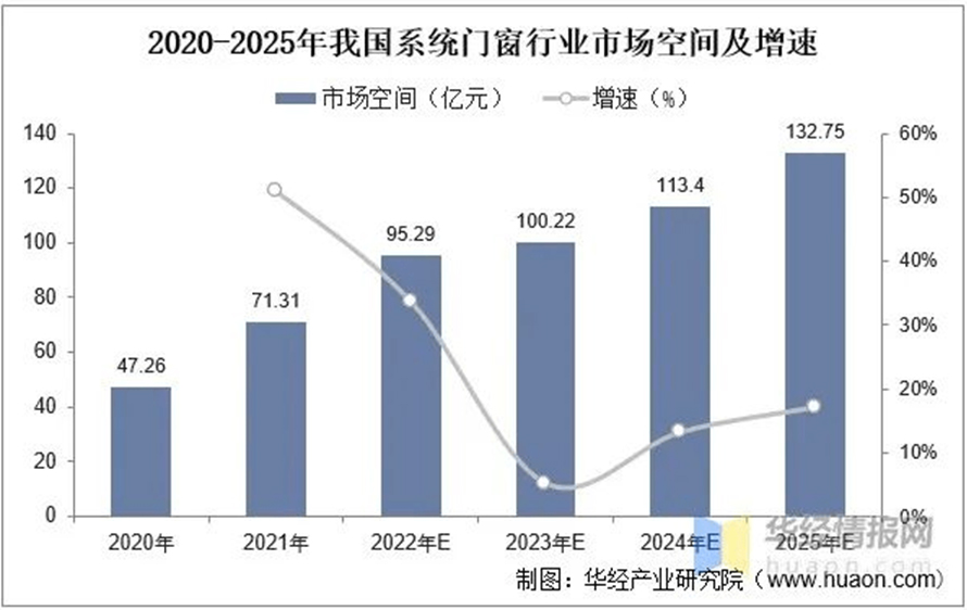 2020-2025年我國(guó)系統(tǒng)門窗行業(yè)市場(chǎng)空間及增速