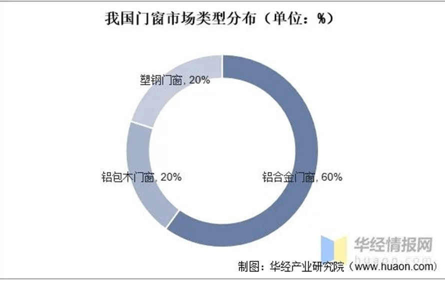 我國(guó)門窗市場(chǎng)類型分布(單位:%)