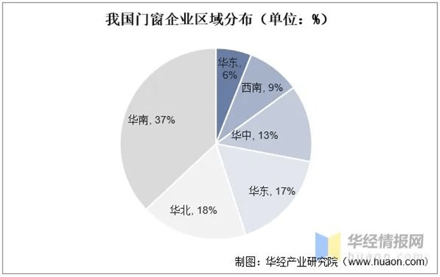 我國(guó)門窗企業(yè)區(qū)域分布(單位:%)